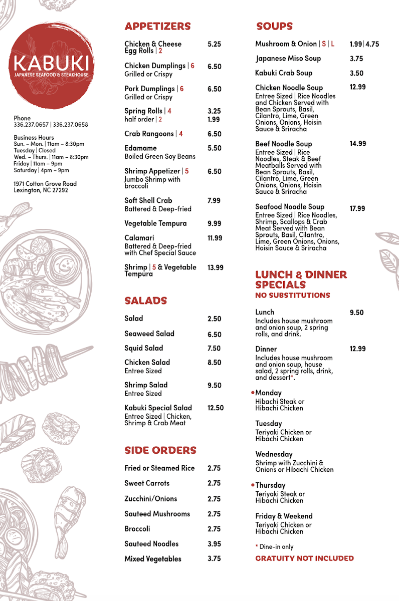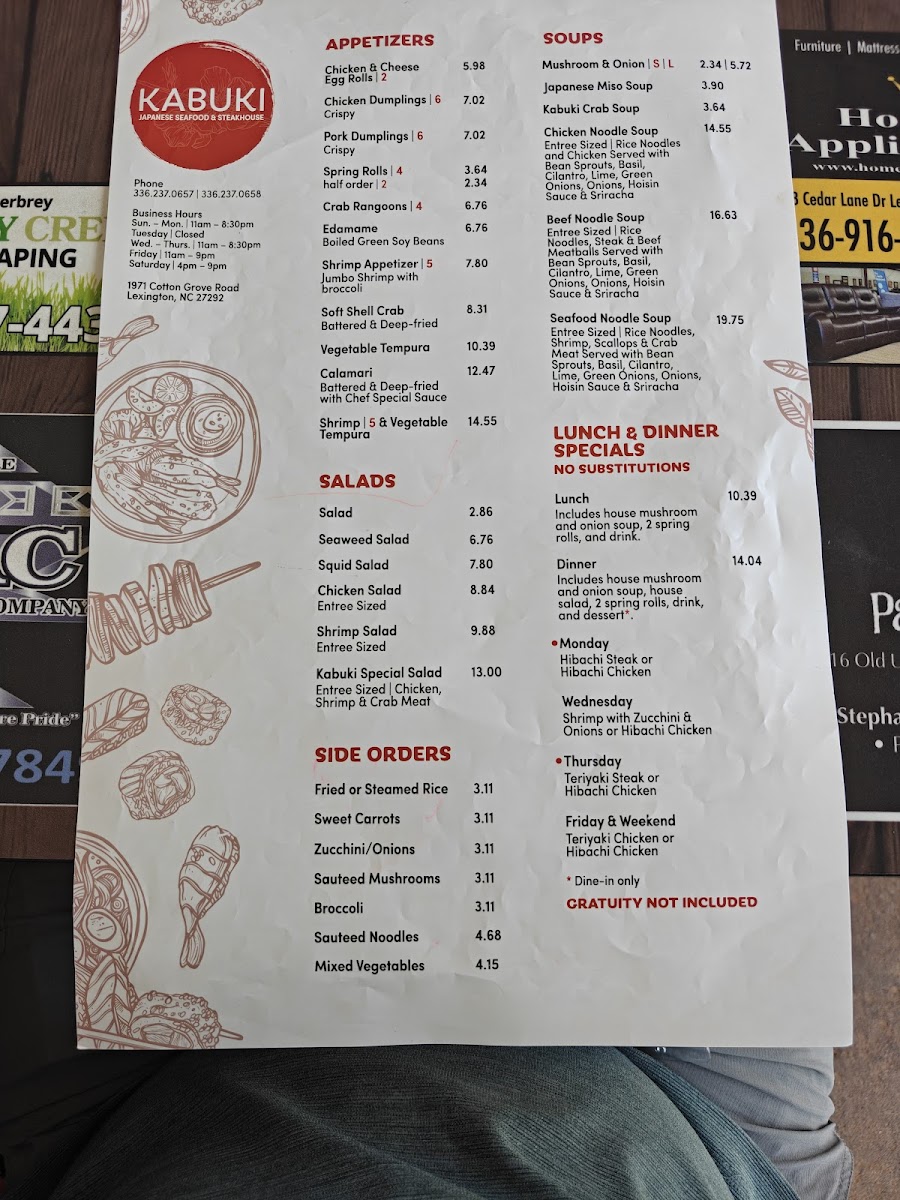 Welcome to Kabuki Japanese Seafood & Steakhouse, a hidden gem nestled in Lexington, NC. Renowned for its fresh, high-quality seafood and exquisite steak, this cozy eatery delivers an exceptional Japanese dining experience. Though modestly placed in a strip mall, the inviting atmosphere welcomes intimate dinners and lively family gatherings alike.